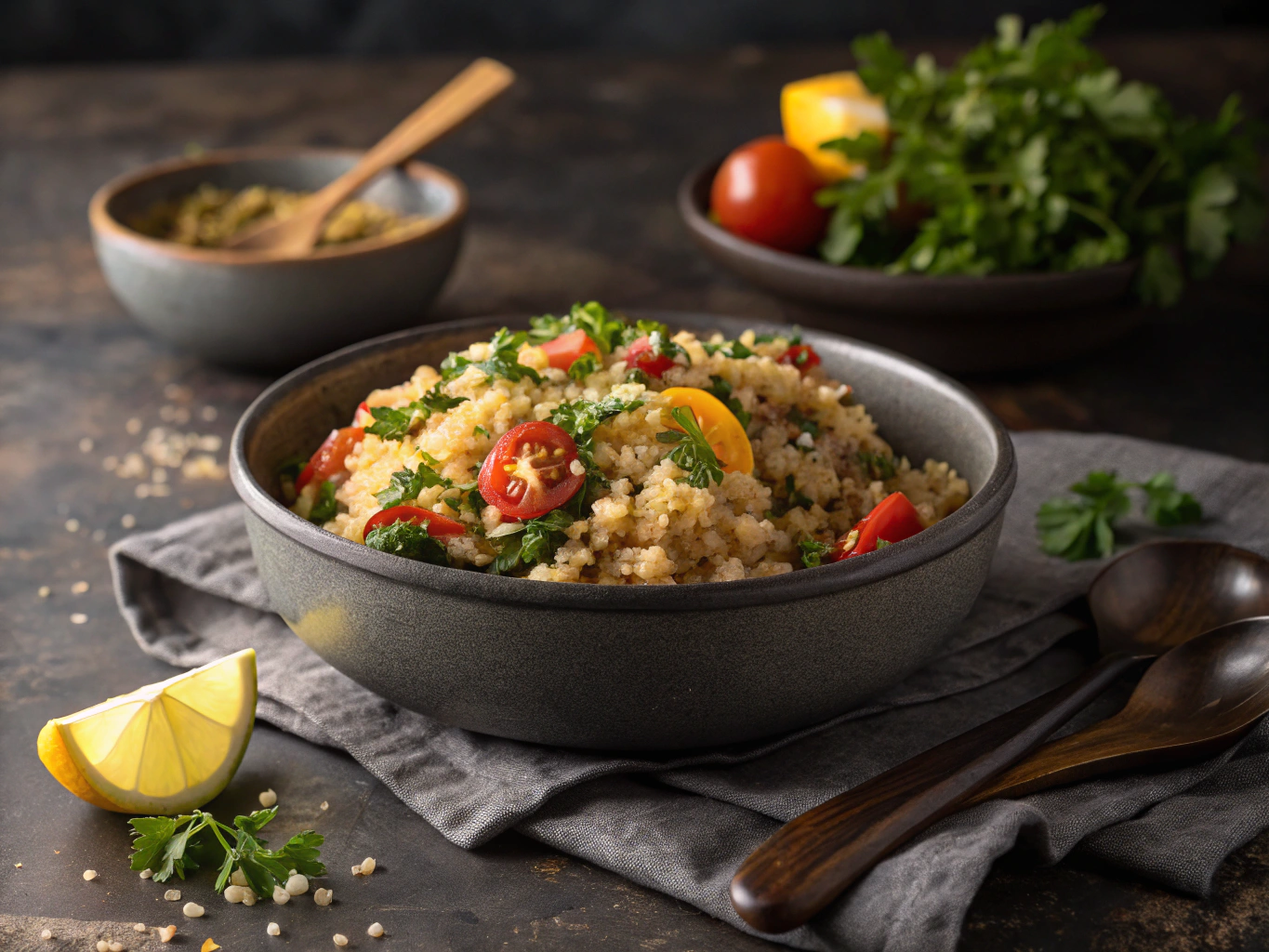 A vibrant and satisfying dish that combines the fluffy texture of quinoa with the deep sweetness of roasted vegetables and the bright kick of lemon. The perfect meal to recharge your energy.