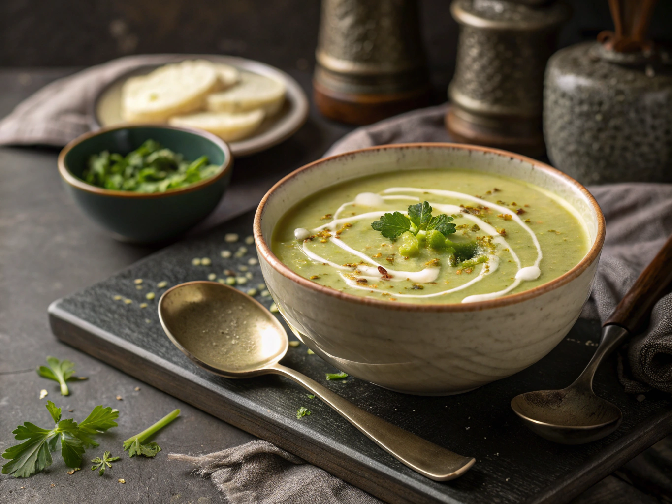 A velvety soup that combines the subtle sweetness of leeks with fresh zucchini, made exceptionally creamy and gut-friendly with a final touch of tangy kefir.